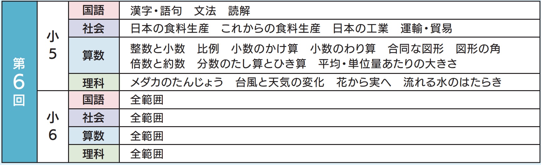 | 小6、小5 | 【小学ぜんけん模試】 算数・国語・社会・理科 |